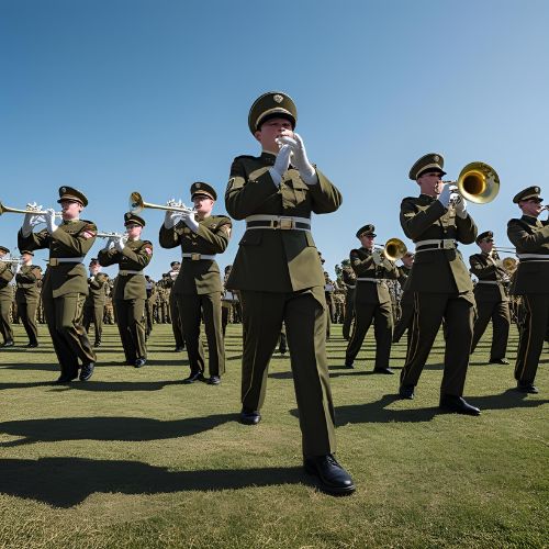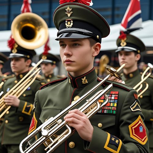 Brasswind musical instruments in army bands produce powerful, resonant tones through lip vibration on metal mouthpieces, adding bold melodies and strength to parades and ceremonial performances.